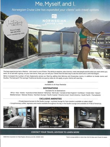 Norwegian Cruise Line makes solo travel at sea effortless, enjoyable, and empowering with its award-winning Studio experience designed exclusively for single travelers. Offering stylish, comfortable accommodations without the single supplement fee, Norwegian’s studio staterooms provide the perfect balance of privacy and connection. Solo guests can socialize in the dedicated Studio Lounge, enjoy onboard activities, and dine freely with Freestyle Cruising, choosing when and where to eat without set schedules. Whether you’re looking to explore exotic destinations, meet new people, or simply enjoy time on your own terms, Norwegian Cruise Line offers the ideal way to sail solo — with freedom, flexibility, and unforgettable adventures at every port.